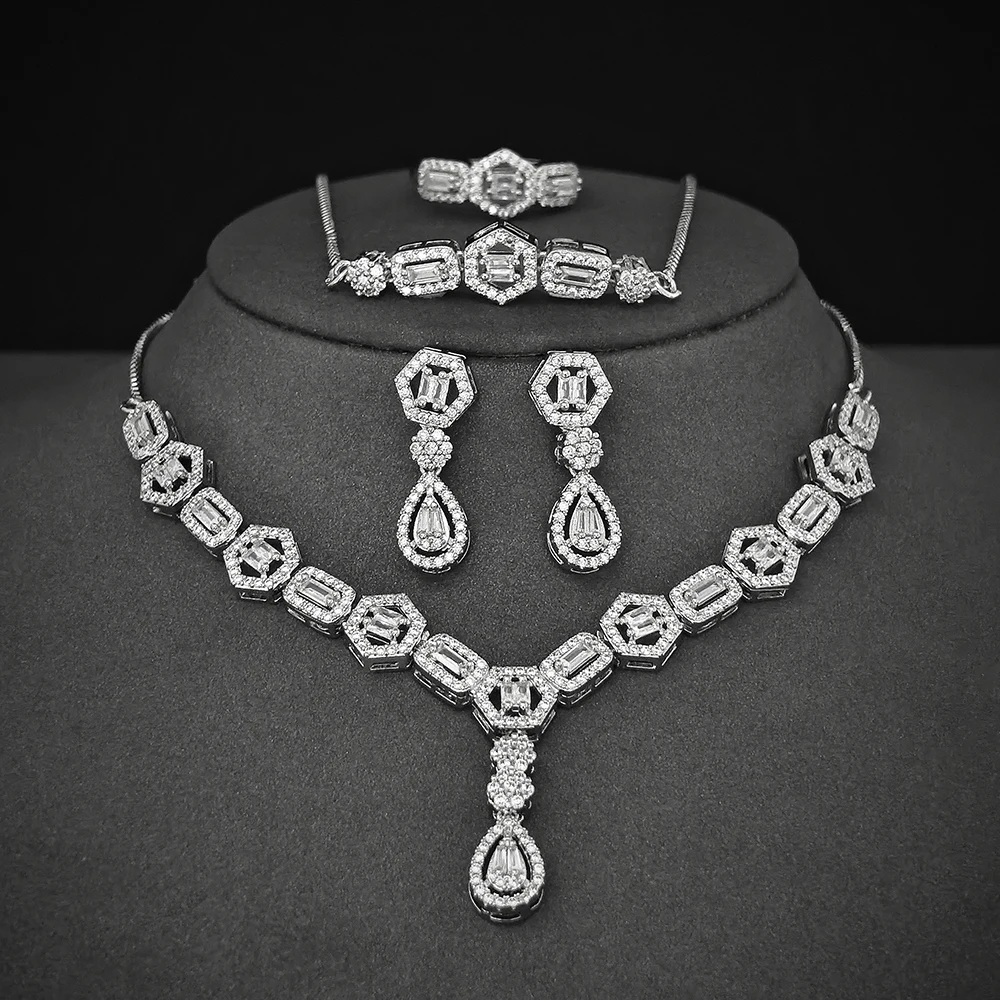 Moonso Luxury Designer Silver Color Jewelry Set for Women Engagement Wedding Anniversary Gift Jewelry E061-R061-S061-X061