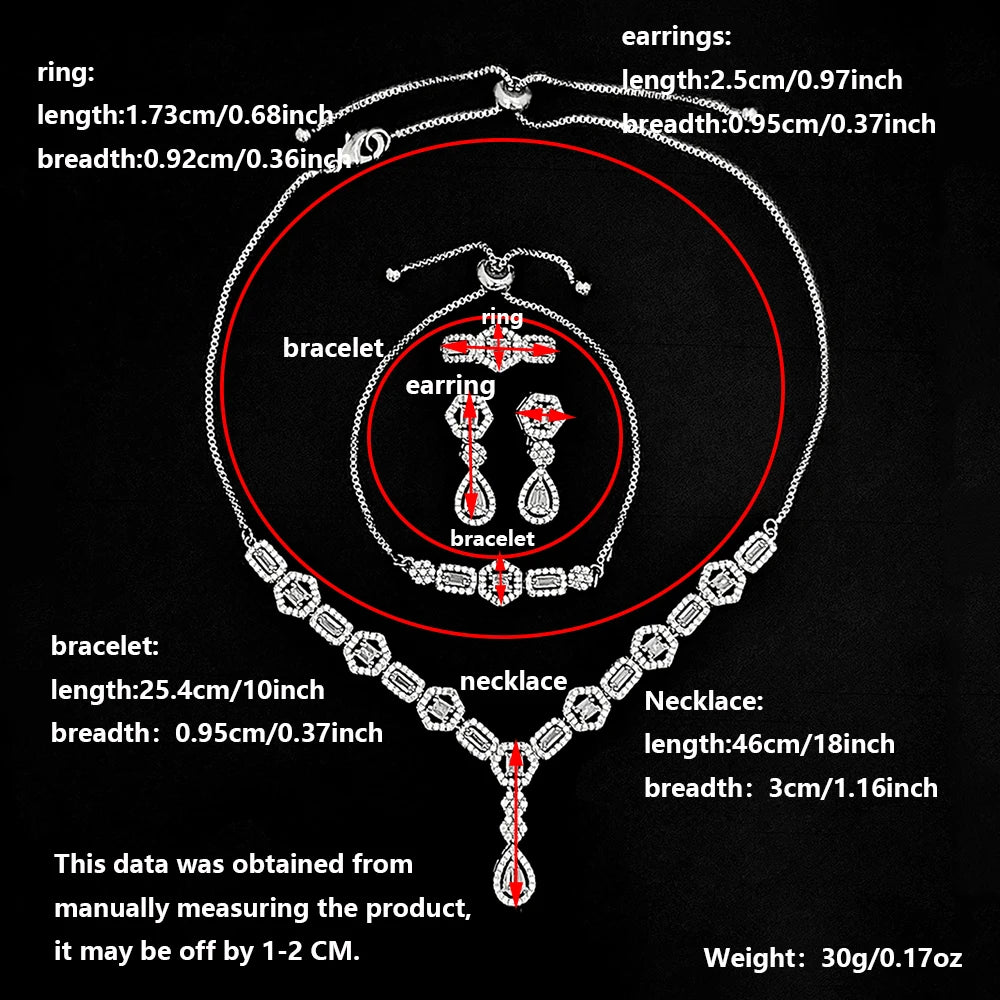 Moonso Luxury Designer Silver Color Jewelry Set for Women Engagement Wedding Anniversary Gift Jewelry E061-R061-S061-X061